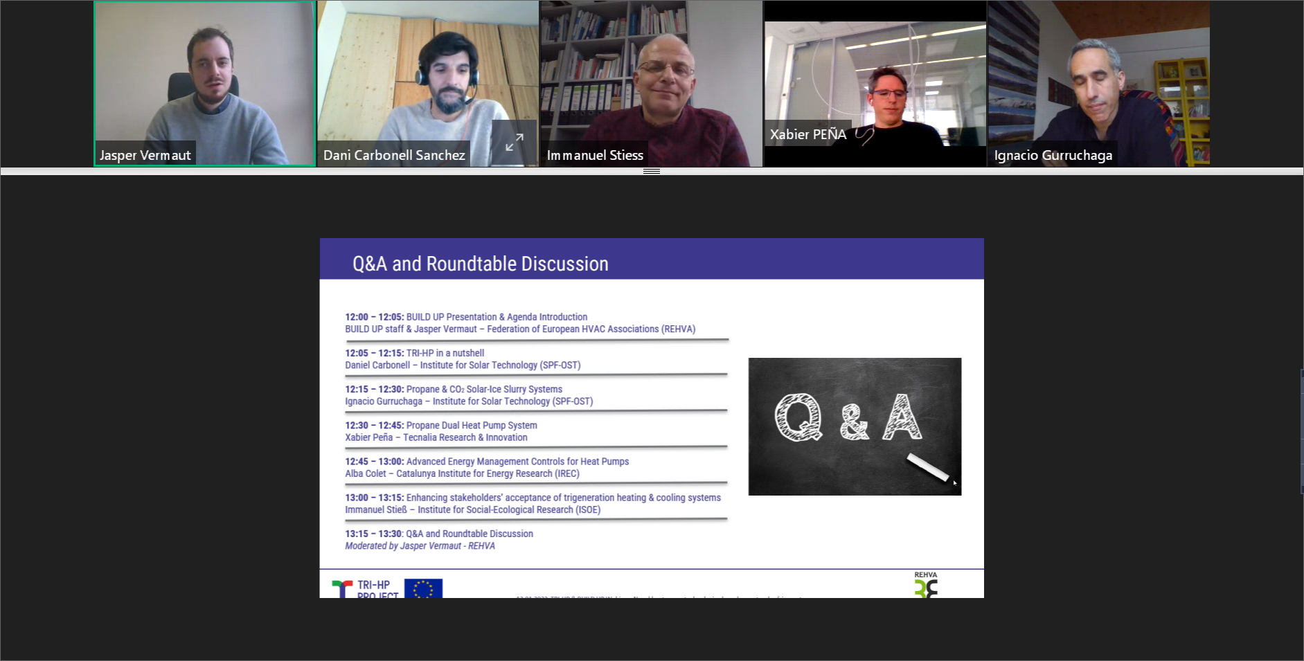 On 12th January at 12.00H CET, the TRI-HP project organised a webinar titled "Novel heat pump technologies based on natural refrigerants and multiple renewable sources". The session was hosted by BUILD UP.
